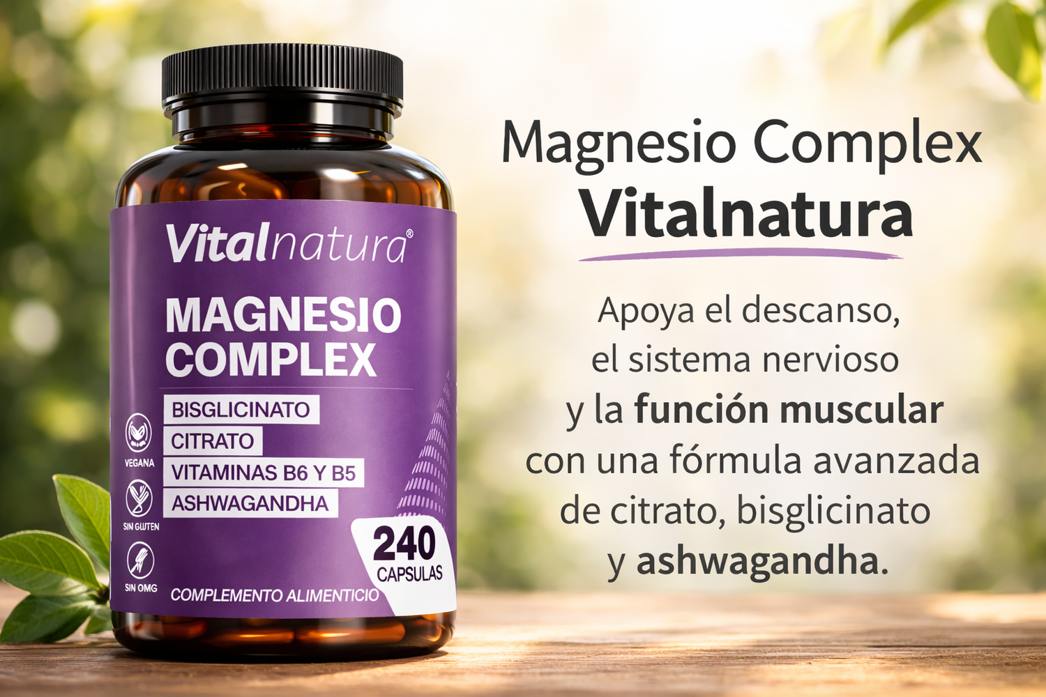 Magnesio Complex con Citrato y Bisglicinato de Magnesio + Ashwagandha Pura 240 Cápsulas (Copia)